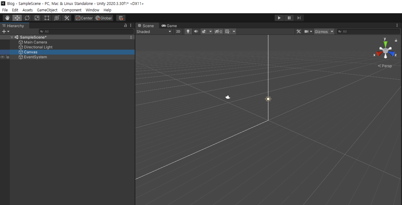 프로젝트에서 Canvas를 생성한다.