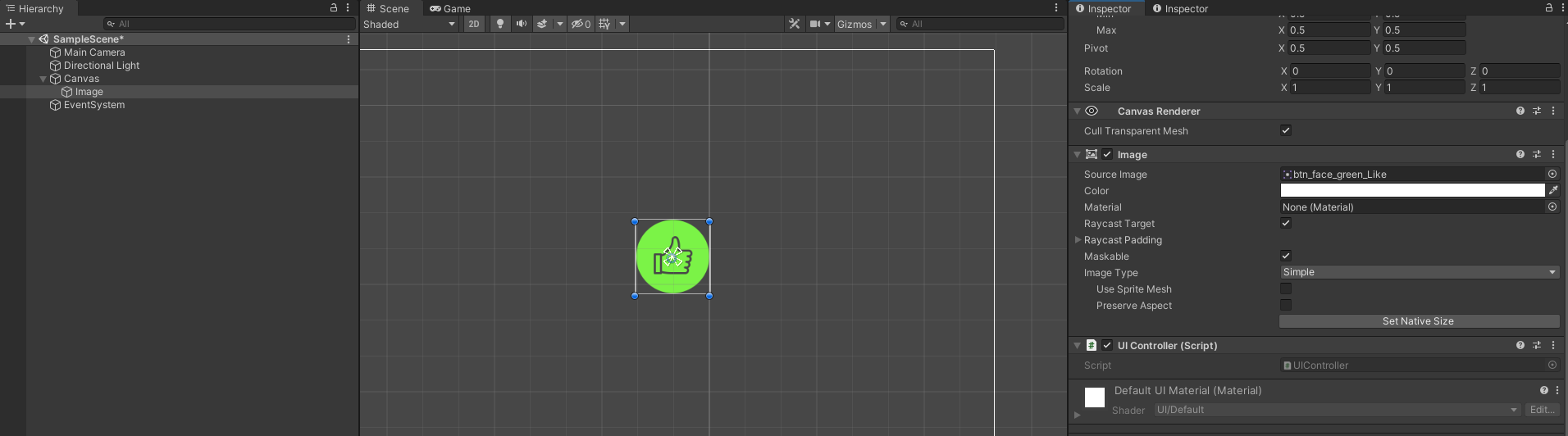 UIController.cs 파일을 Image에 AddComponent 한다.