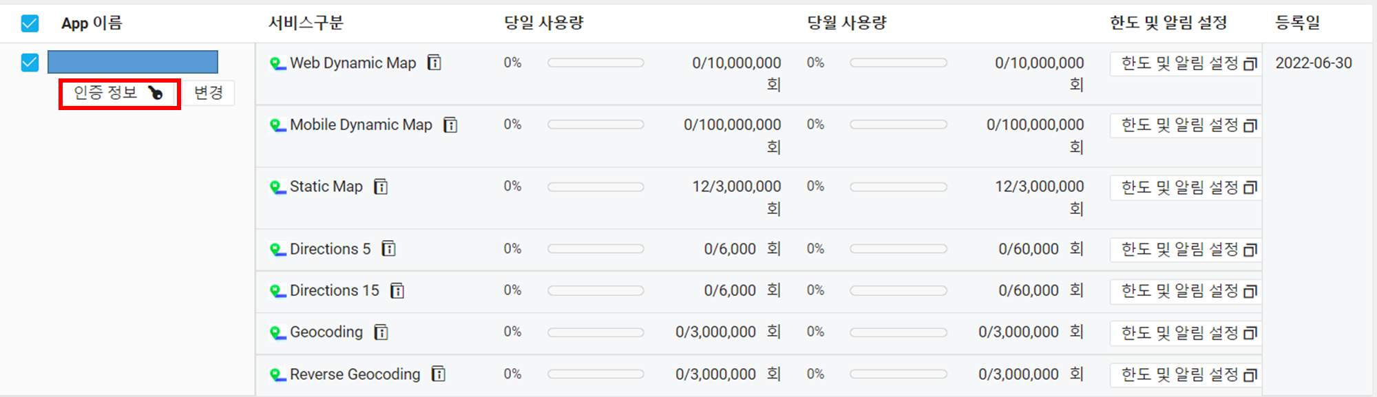 다시 네이버의 콘솔로 돌아가서 등록된 API Services의 인증정보를 확인한다.